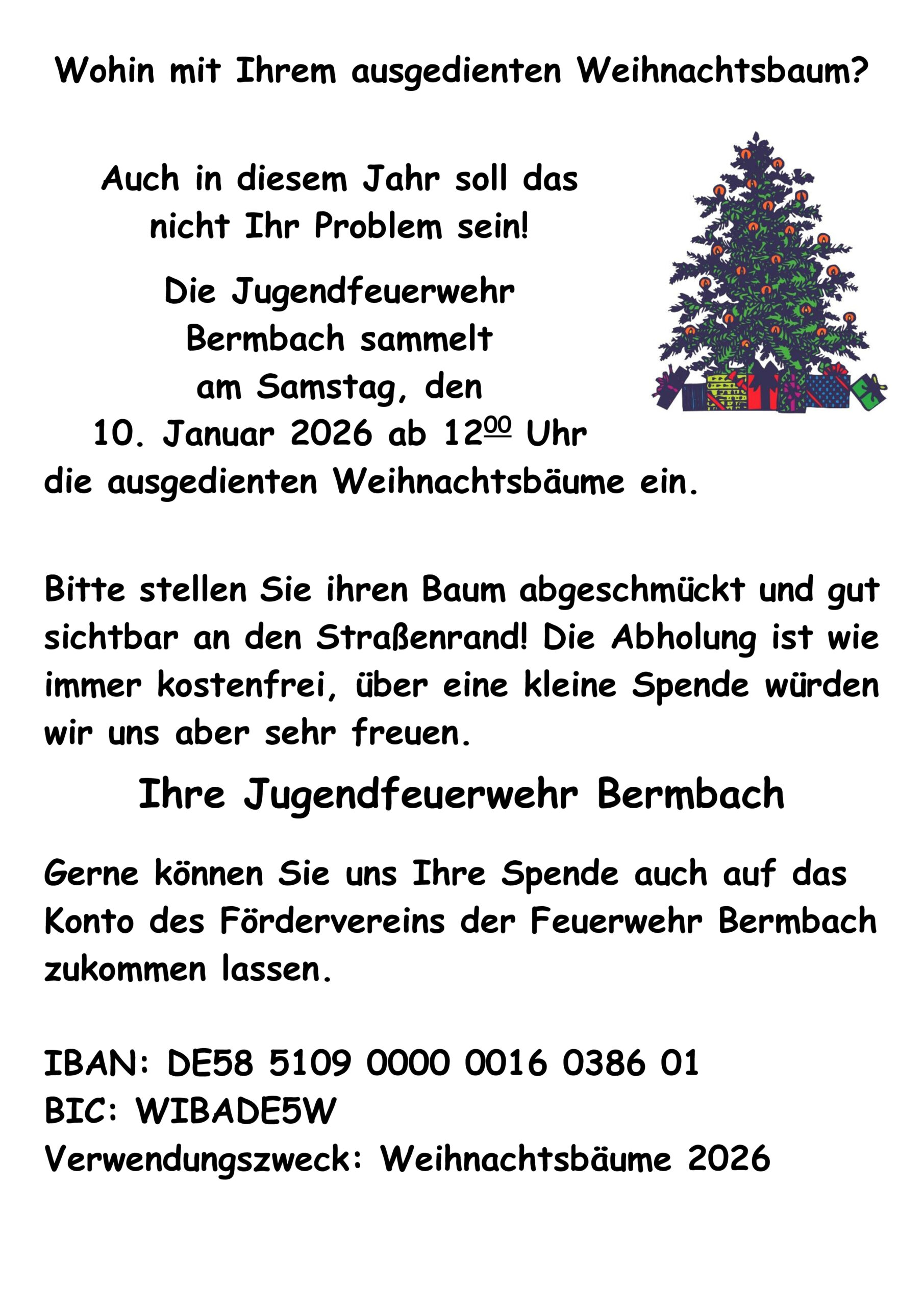 Unsere Jugendfeuerwehr startet wieder mit der Weihnachtsbaumsammelaktion ins neue Jahr.